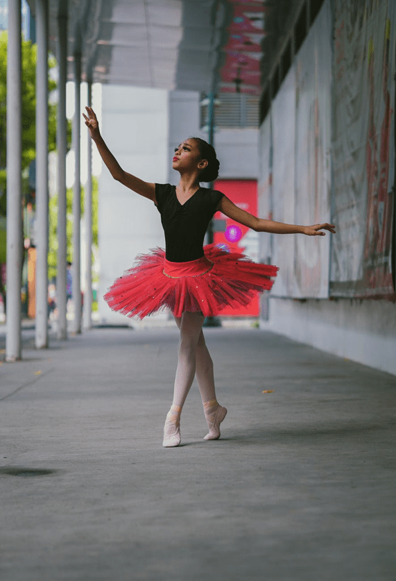 Rises and relevés (“raise up”) show a ballerina’s balance and strength. Relevé is a classic ballet move and it is a movement in which the dancer rises on the tips of the toes. It begins with a demi-plie’ so the ballerina can push up from the floor and then rises up into demi-pointe (on the balls of her feet) or en pointe (on the toes), either on one foot or both feet. For a rise, the ballerina will stretch her knees and push up from the floor with straight legs. She lifts her heels but keeps her toes on the floor. For a relevé, the ballerina will pull her legs and toes toward each other with a spring to reach position. Her toes will move to come underneath her.